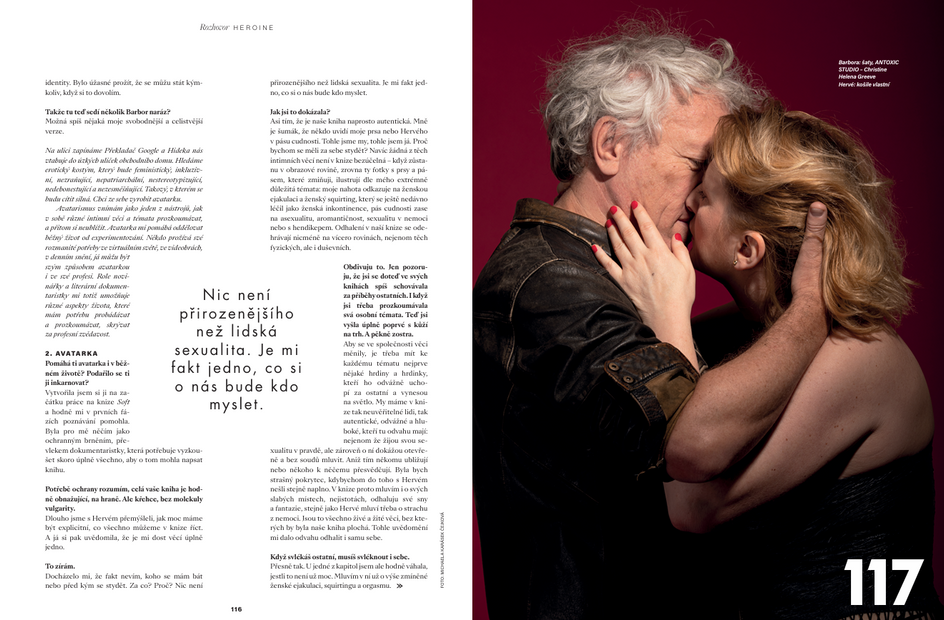 Vztahy, rozchody, emoce. Herečka Ester Geislerová a psychoterapeut Jan Vojtko vědí, že to, co dokážeme sdílet s ostatními, nás méně trápí. Společně proto podnikají cestu po Česku, kde v zaplněných sálech mluví o lásce. Jednou jejich zastávkou bylo i focení obálky nového čísla časopisu Heroine. V posledním letošním vydání ale nejde jen o romantické city: dokumentaristka Barbora Baronová v rozhovoru otevírá téma hranic sexuality, zatímco Moje Heroine Ridina Ahmedová se zamýšlí nad výchovou, která podporuje nevyrovnaný vztah k jídlu. Co by vás v nové Heroine rozhodně nemělo minout? Vybírá šéfredaktorka Michaela Kramárová.