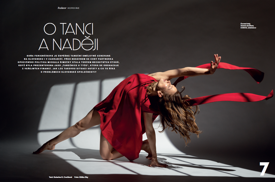 Prvním velkým textem, který reaguje na dění na Slovensku, je náš titulní rozhovor se Soňou Ferienčíkovou. Vynikající taneční umělkyně je zároveň partnerkou šéfa slovenské opozice Michala Šimečky. Před časem ji vládní představitelé obvinili, že se obohacuje z veřejných financí, a dostalo se jí označení „tanečnice u tyče“. Se Soňou jsme si povídali o tom, jak lze takový tlak ustát a co jí nejvíc pomohlo. Ona sama naději ve Slovensko neztrácí.