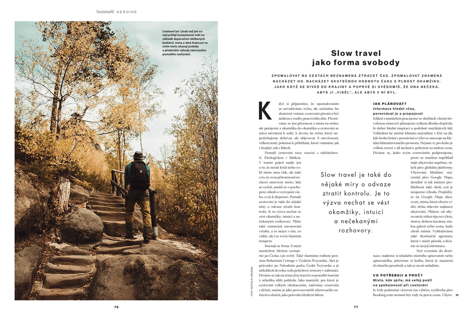 A protože se už jistě těšíte na dovolenou, mám pro vás ještě jeden tip. Zkuste letos nechvátat z místa na místo, ale cestujte z okamžiku do okamžiku. Slow travel je tématem naší přílohy Sustainable. Najdete v ní spoustu inspirativních tipů, stačí jen nespěchat, nebát se trochu pustit kontrolu a nechat se vést chvílí, intuicí i nečekanými rozhovory s místními. Vyzkoušíte to? Já určitě ano!