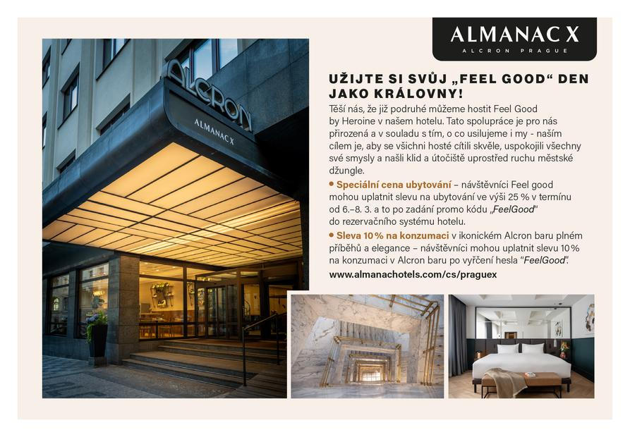 Kolikrát jste si řekla: „Dnes si udělám čas jen pro sebe“ – a nakonec jste upřednostnila všechny ostatní? Mezinárodní den žen je ideální příležitostí to změnit. Přijďte 8. března 2026 na Feel good by Heroine do hotelu Almanac X Alcron Prague a dopřejte si relax, který si zasloužíte.