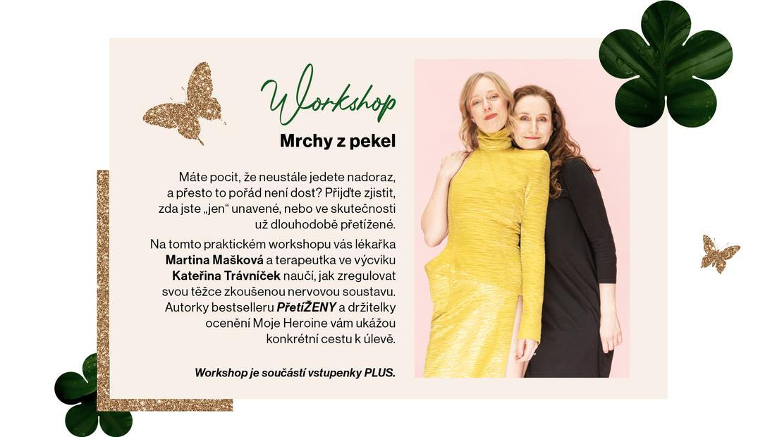 Vstupenka PLUS vás kromě výše uvedeného opravňuje ke vstupu na speciální workshop Mrchy z pekel s autorkami bestselleru PřetíŽENY, kde se naučíte regulovat svůj nervový systém.