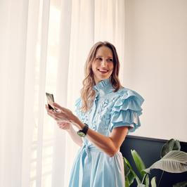 „Telefon si mi líbil na první pohled, i hodinky mě překvapily, že jsou docela lehké a tenké," říká Lenka. „V aplikaci Health se vše dá poměrně intuitivně a jednoduše nastavit. Je tam i měření stresu, což mě zajímalo, stejně tak dechové cvičení, při kterém vás hodinky vedou, abyste si zklidnili během dne svůj dech.“
