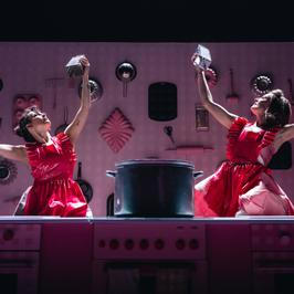 Kristýna: S kolegyní a kamarádkou Terezou Holubovou jsme vymyslely koncept a vzniklo představení, které jsme zasadily do růžové kuchyně. Inspiroval nás styl 50. let 20. století, kdy byl v Americe rozmach výroby domácích spotřebičů. Aby se ulehčilo ženám, které jsou doma a starají se o domácnost. Často vidíme fotky, kdy žena vytahuje husu z trouby a u toho si čte knížku.