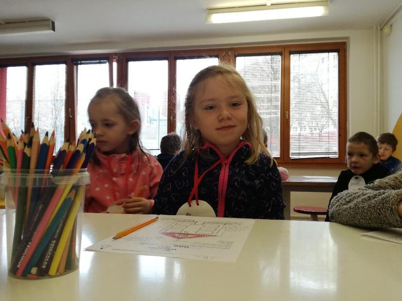 “Dnes mám pro vás připravený pracovní list, který vám za chvíli rozdám. Budeme hodně kreslit a vybarvovat. A budeme se bavit o tom, kde je pravá a levá strana. Schválně, která ruka je pravá?” Vzduchem létají dětské paže a Zdeňka Davidová rozdává pracovní listy. “Pozor, ještě sedíme, záda narovnáme, a posloucháme, co budeme dělat. Zatím ještě pastelky necháme být,” uklidňuje děti, které se už už vrhají na kelímky plné pastelek, stojící na stolech.