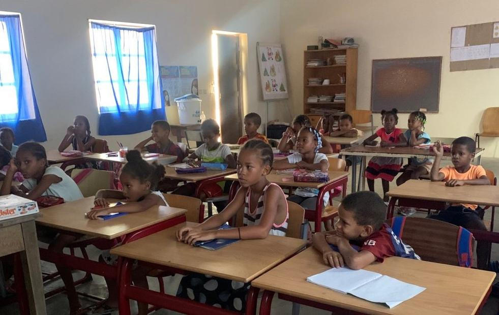 Školní rok se dělí na tři semestry a v závěru každého se dělá test. Děti nedostávají známky, ale body. Nejlepší výsledek je 20 bodů, naopak ekvivalent naší pětky je méně než 9,5 bodu. Pokud děti dostanou hodnocení mezi 8 a 9,4 body, mohou v létě dělat reparát, pokud mají nižší známku než 8, pak musejí opakovat celý ročník. Děti se učí portugalský jazyk, matematiku, něco jako naší prvouku, tělocvik, výtvarku a hudebku. Důležité je zmínit, že Kapverďané mezi sebou komunikují kreolsky, zatímco výuka probíhá kompletně v úřední portugalštině. Pro děti je to tedy obrovský skok, když nastoupí do školy, protože i když je kreolština s portugalštinou podobná, jedna se přeci jen o úplně jiný jazyk.