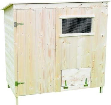 Dřevěný kurník české výroby pro chov až deseti slepic s konstrukcí ze smrkových latí opláštěný smrkovou palubkou si vaše slepičky zamilují. Vnitřní prostor tvoří dvě kukaně na snůšku vajec a bidýlko, střecha je opatřena lehkou asfaltovou lepenkou. Samozřejmě nechybí ani větrací otvor. Rozměry kurníku jsou 140 × 125 × 75 cm (š × v × h) a výška nohou od země je praktických 15 cm.