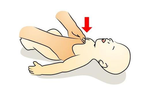 U nejmenších miminek, jenom tak pro představu, je kapacita plic asi jako objem vašich úst. Tedy velmi málo. Po pěti vdeších pokračujete kompresemi hrudníčku. Buď dvěma prsty na spodní třetině hrudní kosti, nebo hrudníček obejmete oběma rukama a mačkáte tamtéž palci.