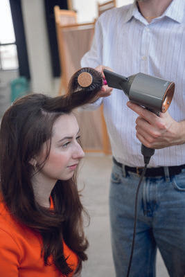 „Máte-li nepoddajné nebo krepatící se vlasy, ještě před samotným foukáním vlasy předvysušte pomocí styleru Dyson Airwrap s tuhým vyhlazujícím kartáčem, který je pomůže zkrotit a zároveň je rozčeše,“ popisuje Martin Tyl.