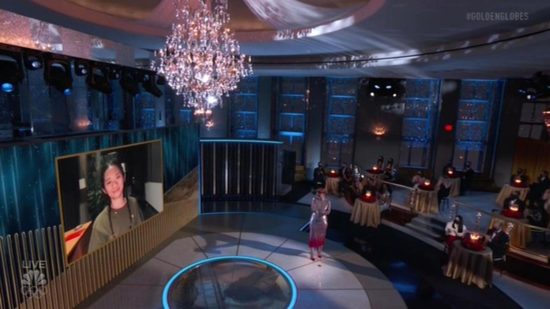 Když Chloé Zhao reagovala na to, že právě získala Zlatý glóbus za režii – jako teprve druhá žena v historii ceny –, krátce poděkovala, ocenila svoje kolegy a pak promluvila o soucitu jako hlavním hnacím motoru své práce. Na rozdíl od ostatních nominovaných neseděla při zoom callu v drahé róbě, s vycizelovaným pozadím a profesionálním nasvícením. Měla na sobě zelené tričko, v ruce hrneček s čajem a její střídmý projev působil i v tomhle netradičním on-line ročníku jako zjevení.