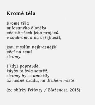 Snad proto jí někteří vyčítali malou sofistikovanost, zbytečnou obraznost a staromódní duchovnost. Jako by obliba u čtenářů byla něčím nežádoucím a básně o krásách i hrůzách přírody či o přítomnosti a všímavosti něčím méněcenným a nehodným literárně kritického rozboru. Jako by básnířky a básníci nepsali i proto, aby byli čteni.