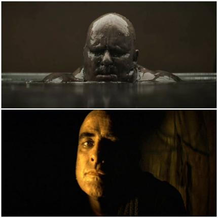Okatým odkazem je tu pak koupel v bahně barona Harkonnena (groteskní, ale vynikající Stellan Skarsgård) s jeho mohutnou plešatou hlavou, která upomíná na Brandova kolonela Kurtze.