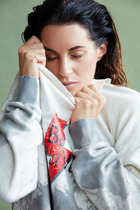 Lucie má na sobě mikinu se sloganem BE BRAVE, 1 899 Kč, Answear.cz