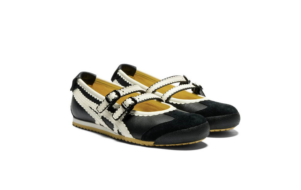 A pak je tu ještě jeden trend, který připomíná tenisky už jen vzdáleně. Představte si boty typu Mary Jane, ale s teniskovým vzhledem. S páskem přes nárt, ale sportovní podrážkou, možná třemi pruhy na stranách. Konkrétní modely? Onitsuka Tiger Mexico 66, Nike Air Rift nebo Adidas Samba Jane.