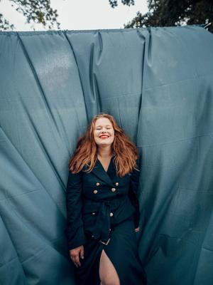 Kristýnu Kohoutovou jsme fotili na pražských Hradčanech v nové kolekci Answear.cz. Má na sobě bavlněné tričko Answear Lab, 939 Kč, kabát Answear Lab X limited collection NO SHAME, 2199 Kč, a mokasíny Answear Lab, 1299 Kč.