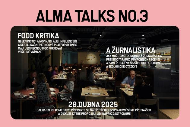 AlmaTalks je inspirativní přednáškový a debatní formát propojující svět gastronomie s aktuálními otázkami. 28. 4. se v gastronomickém konceptu Alma Prague odehraje už třetí díl věnovaný food kritice.