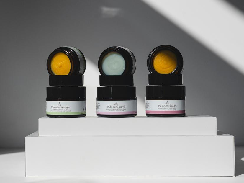 „V Anele jsme vytvořily řadu s názvem Půlnoční. Jsou to hutnější krémy, ale krásně se vstřebávají a umí vytvořit spolehlivou bariéru. V zimě zákaznicím rády doporučujeme balzám Půlnoční krása. Celoročně sluší především zralé pleti, ale právě během zimy se výborně hodí také přes den, a to téměř pro každého. Skvělý je zejména k ošetření nejsušších ložisek. Dále tu jsou Půlnoční Teenka, která působí protizánětlivě, harmonizuje tvorbu mazu, předchází vzniku černých teček a pupínků a zároveň působí i proti vráskám. Pro citlivou pleť je tu Půlnoční motýl,“ dodává Ela, která je společně se svou parťačkou u prvopočátku každého produktu.