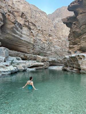 Praktický tip: V Ománu je na mnoha místech nevhodné koupat se v evropských plavkách. Očekává se, že ženy budou mít tzv. celo-tělové plavky - ty buď vypadají jako dlouhý neoprén, anebo jako krátké šaty s dlouhými legínami.