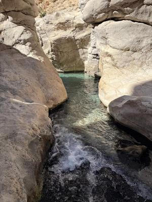 Kolem se tyčí skály, pískovcové bílé, medově i červeně zbarvené. Voda mění barvu od světle modré přes tyrkysovou až po smaragdovou zelenou. Člověk se těší, jak se koupáním ochladí, ale voda v údolí byla teplá, možná až moc.