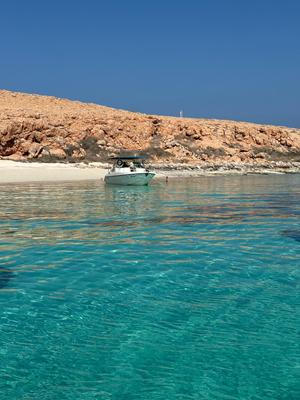 Bílý písek, tyrkysové moře, nádherné koupání bez lidí? Samozřejmě, že jedu! Poslední den naší dovolené si u tamní agentury koupíme výlet na Daymanyiat Islands. Souostroví devíti neobydlených ostrovů tvoří přírodní rezervaci a nachází se asi 45 minut od pobřeží, v Ománském zálivu Indického oceánu.