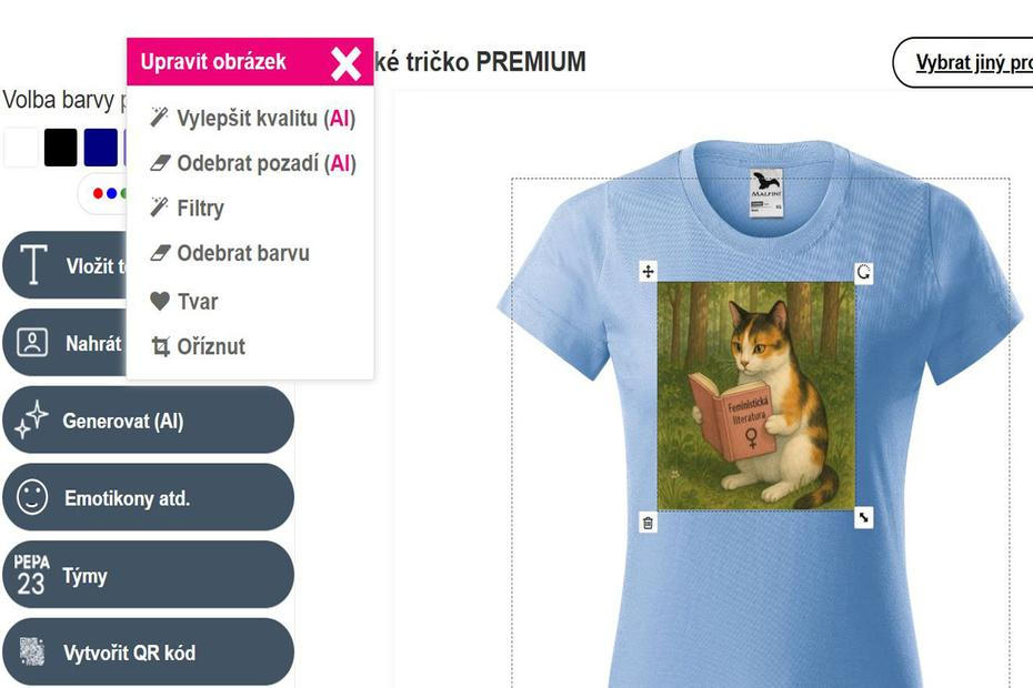 Jakmile máš návrh, můžeš ho upravit, doplnit o text nebo ho rovnou objednat. Výroba je česká, kvalita tisku vysoká, textil příjemný. Klidně objednej jen jeden kus na zkoušku a uvidíš. Ideální pro osobní dárky i tvé vlastní sebevyjádření.