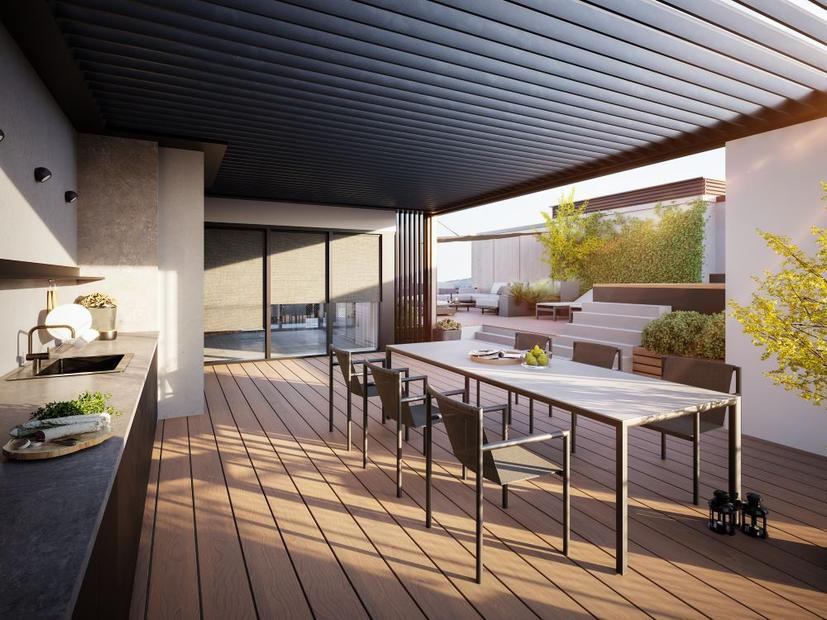Exkluzivní projekt vám navíc nabídne bohaté zázemí – např. střešní terasu se saunou ve výšce 68 metrů nad zemí či wellness zónu s posilovnou a skleněným 18metrovým bazénem v původním betonovém krytu civilní ochrany. Naprostou novinkou, která se jinde v tuzemsku nenachází, je autovýtah pro zaparkování vašeho vozu přímo přede dveřmi bytu.