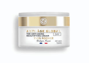 Koriguje všechny známky stárnutí: pevnost, hutnost, vrásky, jas a rovnoměrnost tónu pleti. Prémiová řada Anti-Age Global od Yves Rocher nabízí viditelné výsledky už za 72 hodin.