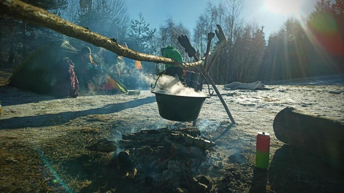 Kousek před cílem dostávám další zprávu: „Tak navidenou rano… Ohen hori. Uvidite nas“. Tak jo, to bude fajn reportáž ze spícího tábora, pomyslím si. V 19:30 vystupuji z auta, beru batoh se zimním spacákem a stan. Po lesní cestě plné zamrzlých kaluží se kloužu směrem k domluvenému místu noclehu. Teplota postupně klesá až k minus šesti.
