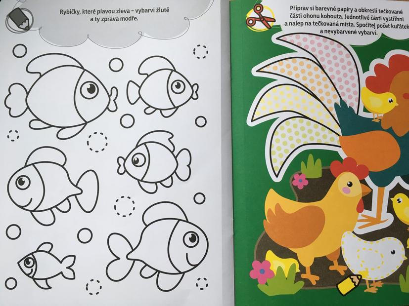 Jedná se o velkoformátový časopis bez textů, který nabízí především procvičování obkreslování a stříhání, přiloženy jsou i barevné papíry. Ty se po vystřihnutí nalepují. Úkoly s nimi jsou jasně a jednoduše popsány. Nechybí však ani úkoly na procvičování jednoduché grafomotoriky.