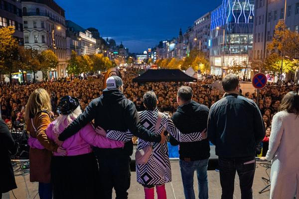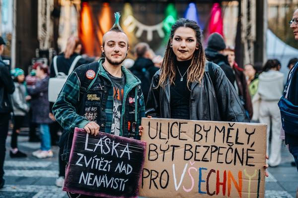Smutek, frustrace, ale především solidarita a pospolitost. Několik tisíc lidí s duhovými vlajkami, transparenty nebo prostě jen tak dorazilo ve středu v podvečer na Václavské náměstí na veřejné shromáždění Společně proti nenávisti, které spoluorganizoval spolek Prague Pride. Ten s další více než dvacítkou organizací sepsal jen pár dní po teroristickém činu v Bratislavě otevřenou výzvu parlamentu ČR, ve které apeluje na přijetí konkrétních kroků k ochraně LGBT+ lidí, rodin a dětí. Ke včerejšku se podpisem připojilo více než 17 tisíc lidí.