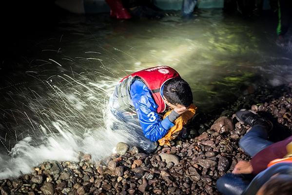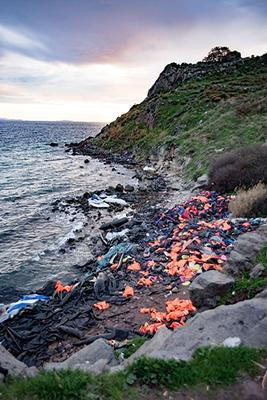 Pobřeží lemovalo tisíce opuštěných plovacích vest. Snažili jsme se najít nějakou restauraci nebo hotel, kde bychom se mohli ubytovat, ale nikde nás nechtěli přijmout. Jedna řecká žena nám nakonec poradila, abychom šli do kostela, kde můžeme strávit noc a druhý den pokračovat do jiné, asi čtyři hodiny vzdálené vesnice. Odtud nás pak autobusy UNHCR (Úřad Vysokého komisaře OSN pro uprchlíky – pozn. red.) odvezly do Mytilini.
