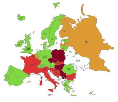 Mapa ukazuje rozsah státem řízeného očkování: