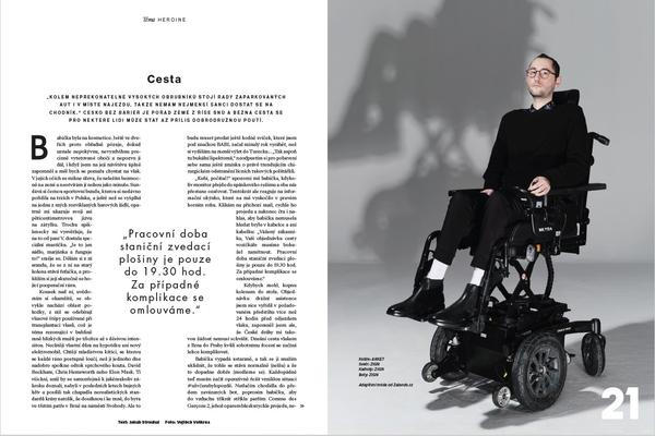 „Kolem nepřekonatelně vysokých obrubníků stojí řady zaparkovaných aut i v místě nájezdu. Takže nemám nejmenší šanci dostat se na chodník.“ Básník a podcaster Jakub Strouhal pro časopis Heroine popsal svou cestu na focení z Brna do Prahy. Protože Česko bez bariér je pořád země z říše snů, může se i obyčejná cesta hromadnou dopravou stát až příliš dobrodružnou poutí. Jakubovu reportáž si přečtěte v nové Heroine.