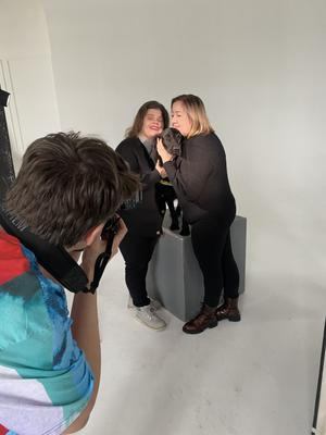 Romana má na sobě šedý svetr ZIGN, Daniela černý cardigan EVEN&ODD, vše adaptivní móda od Zalando.cz