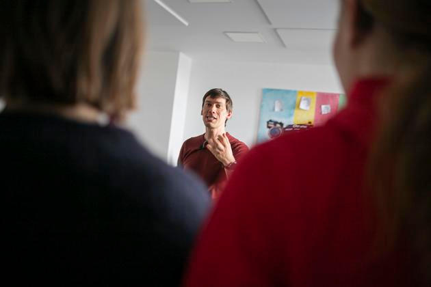 Jeho výhodou je, že učí právě na Přírodní škole – alternativně zaměřeném gymnáziu. Kde se děti často učí v blocích propojených předmětů a vyjíždějí na několikadenní pobyty mimo školu a často i „mimo civilizaci“. „Jako Evropani žijeme v pohodlí, máme se dobře a je pro nás pak těžší překonávat překážky. Pomáháme studentům, aby se jich nebáli nebo se jim nevyhýbali,“ popisuje. Jeho studující si navíc mohou do jisté míry svoje vzdělávání řídit sami: „Studenti dostanou seznam úkolů, které musí splnit, do značné míry je ale na nich, kdy a jak toho dosáhnou. Učí se tak organizaci a nesou spoluzodpovědnost za proces učení.“