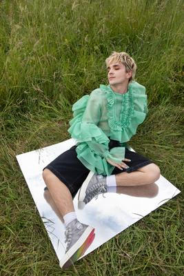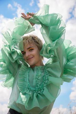 Mám teď po dlouhé době období, kdy se jako kluk opravdu cítím dobře. Když se podívám do zrcadla, líbí se mi, co vidím. Pro řadu lidí je to určitě automatické, ale pro mě jde po dlouhé době o nový pocit. Focení mělo být o mně a drag jako takový v nabídce nefiguroval – tak jsem si řekl, že můžu být trochu „drzý“ a přijít sám za sebe. Dřív jsem si neuměl ani představit, že si dokážu vymyslet super outfit jako kluk: všechny moje módní představy směřovaly k dragu. Tohle byla super příležitost si dokázat, že můžu vypadat dobře a sexy jako kluk. Asi jste to nečekali, ale dali jste mi skvělou příležitost si to vyzkoušet.