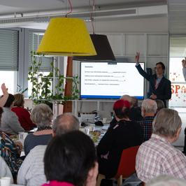 Po přestávce následují praktičtější ukázky. Nejdřív lektorské duo představuje různé způsoby, jak lze v dnešní době přijít o peníze. Jan Marek s kolegyní sehrávají velmi přesvědčivý phishingový telefonát, kdy pod vymyšlenou záminkou – někdo prý s jeho kartou právě nakupuje v Turecku – ze sebe vysype všechny údaje ke své kreditce. „Co o mně na začátku věděla?“ ptá se Jan Marek a přítomní s pobavením odpovídají: „Nic, všechno jste jí o sobě prozradil sám.“ A jaká je obrana? „Zavěsit a jít se zeptat do banky nebo zavolat na infolinku a poradit se tam,“ nenechávají se už zviklat účastníci školení. „Vaše banka po vás nikdy nebude chtít celé číslo karty, natož po telefonu,“ zdůrazňuje Petr Mojžíš.