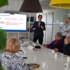 „Ahoj! Mám další zájemce o pétanque,“ jásá starší muž a objímá štíhlou prošedivělou dámu. V nablýskané zasedačce prosklené kancelářské budovy působí oba trochu nepatřičně, ale evidentně jim to nevadí. Představují se jako Václav a Mária a společně s partou přátel ve zralém věku si sem, do sídla technologické společnosti ANECT, přišli poslechnout přednášku o rizicích internetu. Do začátku akce ještě pár minut zbývá, čtyři desítky seniorů a seniorek už jsou ale na místě a nad skleničkami s džusem a talířky s chlebíčky probírají, co je v jejich životech nového. Někteří postávají trochu stranou – na dnešní přednášku totiž dorazili posluchači nejen z Prahy, ale také z Ostravy a dalších měst.