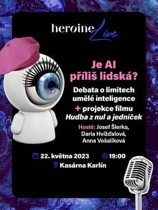 Ovládne nás za pár let umělá inteligence? Naučí se od nás xenofobii a ageismus, nebo nám naopak v plném světle ukáže dosavadní limity lidské povahy? A můžeme se na soužití s AI vůbec nějak připravit? Nejen na tyto otázky dnes v Kasárnách Karlín odpoví ti, kteří se s umělou inteligencí potkávají každý den teoreticky i prakticky – Daria Hvížďalová, Anna Vošalíková a Josef Šlerka. Ponořte se s Heroine do světa binárního kódu, který ten náš skutečný formuje už teď. A vývoj každým dnem zrychluje.
