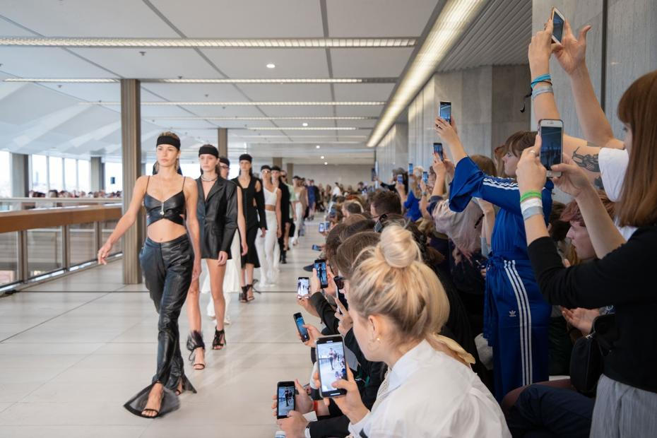 Co se mezitím, co si hosté fotí outfity, zdraví s kolegy nebo si dopřávají espresso nebo šampaňské, děje v zákulisí? „Myslím, že tam je to mnohem zajímavější, mnohem reálnější. Je tu vidět práce a maximální soustředění všech, kteří na show pracují,“ říká mi Marta, která se už několik let stará o sociální sítě hlavnímu make-up artistovi MBPFW a prakticky celých šest dní tráví v zákulisí módních přehlídek. „Může to působit až úsměvně, jde jenom o hadry, žejo, ale opravdu tam jsou momenty, jako když se kardiochirurg připravuje na transplantaci srdce. Celý ten maraton je neskutečně vyčerpávající, ale taky vzrušující, funguje tu pocit sounáležitosti a to je moc příjemný.“