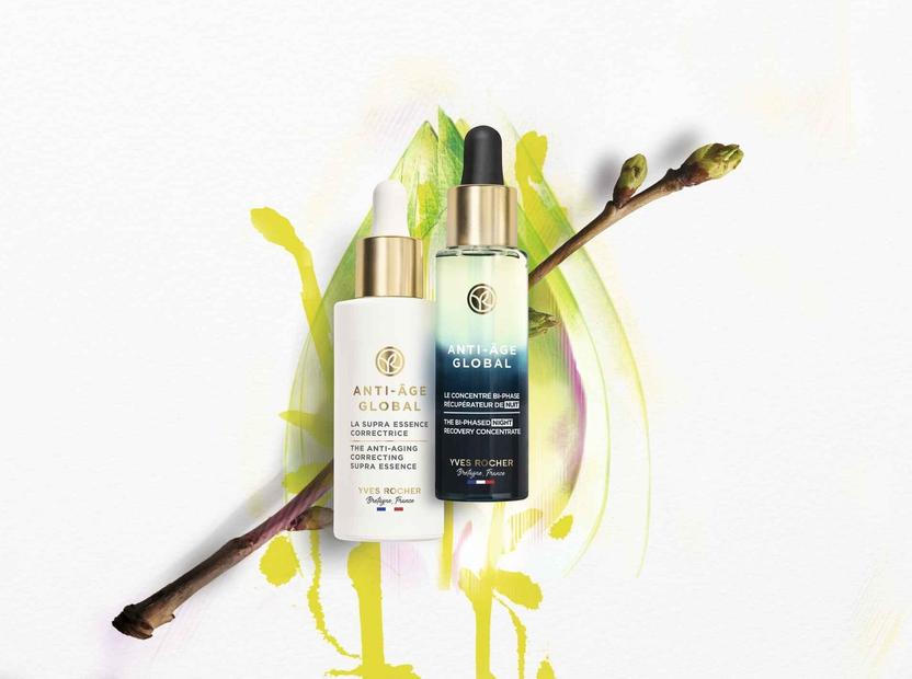 Rostlinný nektar z pupenů šeříku reaguje v jádru kožních buněk, kde stimuluje intenzivní buněčnou obnovu: fibroblasty, zdroj produkce kolagenu, se obnovují rychleji a až o 20 % více. Výzkum Yves Rocher je inspirován gemmoterapií, objevováním cenných buněk s mimořádnou regenerační silou v srdci pupenů rostlin, které pak působí jako hlavní účinná složka v řadě Anti-Age Global.