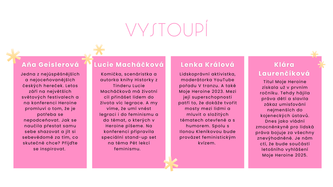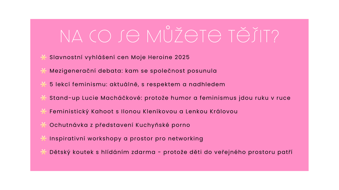Časopis Heroine slaví šest let. A je načase si připomenout, že slovo feminismus už nemusí znamenat těžkou debatu a vážné výrazy. Letos se chceme smát, sdílet i pochybovat – protože i to je součástí cesty k rovnosti. Přijďte na pátý ročník ocenění Moje Heroine, debaty napříč generacemi a 5 lekcí feminismu, které společnost pořád potřebuje.
