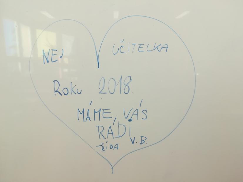 Nejdojemnější byl pro mě vzkaz od dětí, který jsem jednoho dne našla na vnitřní straně tabule. Je těžké něco takového hned smazat, tak jsem si ho před dětmi vyfotila a dojatě dala i na FB. Milé chvilky s tímto vzkazem pokračovaly, protože se líbil dětem a rodičům, které jsem v průběhu 18 let učila a jsme na FB přáteli.
