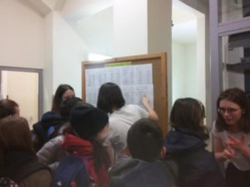 Podobný frmol jako na chodbě je i ve sborovně, kde se před chvílí rozpečetila zásilka testů z CERMATu a jednotliví zadavatelé si své hromádky odnášejí do tříd. Tam pak seznamují uchazeče s pravidly: v lavici každý sám, láhev s pitím musí zůstat v tašce, během testu nesmí nikdo odejít ze třídy.