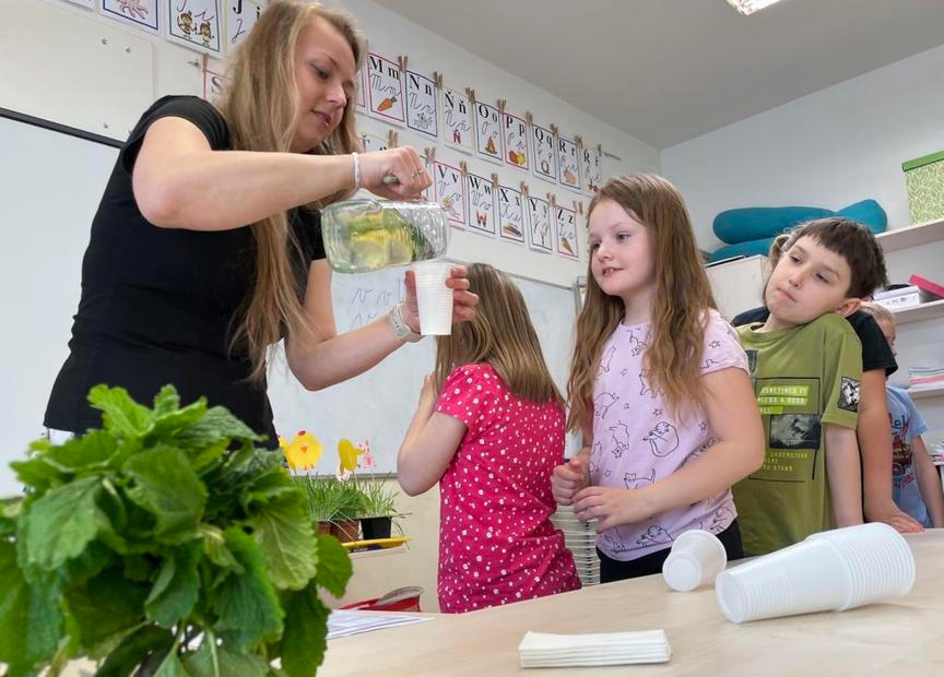 A tak si třída Ještěrek z Odolené Vody vybrala výzvu nazvanou „Zasaď strom nebo jinou rostlinu“. Děti si rovnou vyzkoušely, jak může být osvěžující, když takovou meduňku doma máte. A vlastně tím naplnily i další výzvu, která zní „Jíme zdravě a ekologicky“ – protože prvňáčci, kteří se nadchnou pro limonádu z bylinky, ji třeba někdy rádi vymění za průmyslově vyráběné sladké limonády.