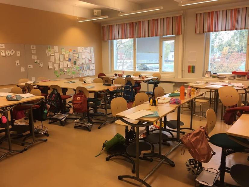 Finské třídy nejsou úplně malé – bývá tu cca 25 dětí, a občas se učí třídy i společně. Na každou třídu jsou ale většinu času přítomni minimálně dva učitelé. Často se děti dělí do dvou skupin, kdy například jedna skupina s učitelem sleduje video a baví se o něm, druhá mezitím dělá nějakou jinou práci, a pak se vystřídají. Zároveň děti často pracují v menších skupinkách, které se koordinují samy a rychlejší v nich pomáhají pomalejším.