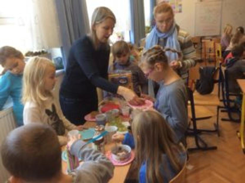 Každé pondělí se v Poděbradech společně snídá. Z lavic se upraví hodovní stůl, uždibuje se a povídá. Děti z různých tříd dohromady, učitelé, někdy se na kávu nebo čaj zastaví i rodiče. Sdělí své starosti a radosti, proberou se recepty. „Děti si mají po víkendu hodně co povídat, je třeba se pomalu naladit zpátky na školní režim,“ přibližuje ředitel školy Jindřich Monček.