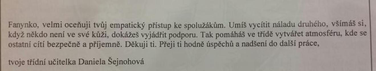 Každé dítě by mělo ve vysvědčení najít něco, z čeho se zaraduje.