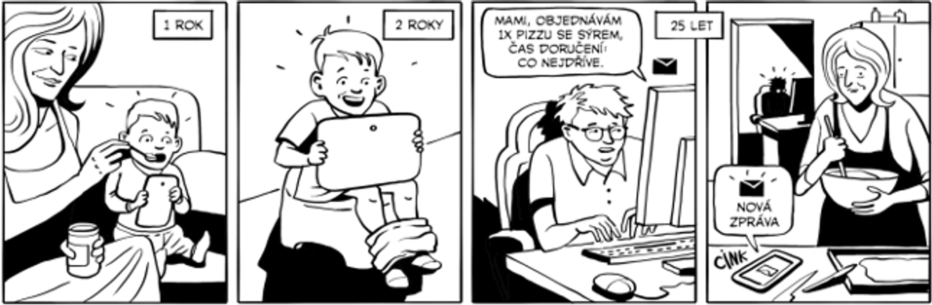 Čím dál tím mladší děti mívají fyzické i psychologické potíže spojené s nadužíváním počítačů, mobilů i televize. Jak jim předejít? Kritické je zejména období do pěti let, kdy probíhá bouřlivý vývoj mozku, vytváří se vztah k nejbližším lidem a ustavují se základy zdravého chování. Cílem výchovy by nemělo být děti od digitálních technologií „odstavit“, ale citlivě je do jejich světa uvést. Ideálem je zvídavý, ale bezpečný přístup. Šanci cokoli ovlivnit máte asi do dvanácti let.