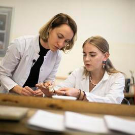 Zlatnictví je maločetný obor. V dílně mívám při výuce skupinu kolem deseti studujících. Výuka probíhá v bloku, což znamená, že nechodí pouze na jednu vyučovací hodinu, po které hned odcházejí, ale strávíme společně celý den. Mám tedy prostor se jim individuálně věnovat a vztah mezi námi je hlubší. Když tvoříme, všechno jim názorně ukazuji, aby viděli, že jsem člověk, který řemeslo v praxi ovládá, nejen teoretik. Pravidelně jim dávám zpětnou vazbu. Když se jim něco opravdu povede, zmíním, že bych to neudělala líp. A naopak když se něco nepovede, povzbudím je, že málokdy něco vyjde hned napoprvé, a sdílím, že i já jsem některé výrobky dělala třeba na třikrát. Můžou mít pocit, že jejich spolužáci či spolužačky jsou lepší nebo zručnější. Ujišťuji je, že k cíli ale dojdeme všichni, každý jen svým tempem. Takže aby se nehodnotili a nesrovnávali a šli po své vlastní cestě.