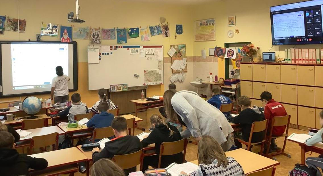Do školy jde tohoto prosincového slunečného rána jen část žáků 4.A – ostatně jako je v poslední době vlastně už zvykem. Tentokrát jsou v karanténě tři žáci, což je vlastně ještě poměrně dobrý výsledek, protože ještě před měsícem chyběla klidně polovina třídy. A jejich třídní učitelka Gabriela Urbanová s tím počítá, takže jako obvykle chystá z výuky přímý přenos.